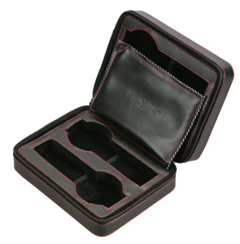This high quality Diplomat watch travel case is designed to store four of your most valuable timepieces in a compact and safe manner. This outside of this case is lined with rich black leather and features a bold red stitching around the edges. The inside of the case is lined with a combination of rDiplomat 31-468 Black Leather Quad Watch Zippered Travel Case with Black Suede Interior Watch Case Do not Miss!! This high quality Diplomat watch travel case is designed to store four of your most valuable timepieces in a compact and safe manner. This outside of this case is lined with rich black leather and features a bold red stitching around the edges. The inside of the case is lined with a combination of r... Diplomat 31-468 Black Leather Quad Watch Zippered Travel Case with Black Suede Interior Watch Case