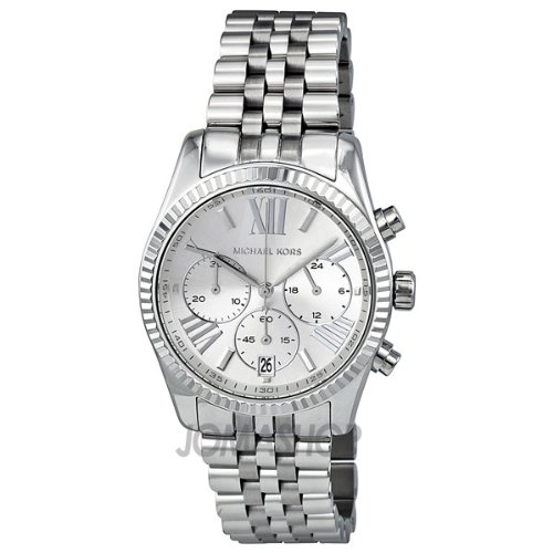 Stainless steel case with a stainless steel bracelet Fixed stainless steel bezel Silver tone dial with silver-tone hands and index hour markers Roman numerals mark the 4 8 and 12 oclock positions Minute markers around the outer rim Dial Type Analog Luminescent hands and markers Date displaMichael Kors Lexington Chronograph Stainless Steel Ladies Watch MK5555 Do not Miss!! Stainless steel case with a stainless steel bracelet Fixed stainless steel bezel Silver tone dial with silver-tone hands and index hour markers Roman numerals mark the 4 8 and 12 oclock positions Minute markers around the outer rim Dial Type Analog Luminescent hands and markers Date displa... Michael Kors Lexington Chronograph Stainless Steel Ladies Watch MK5555