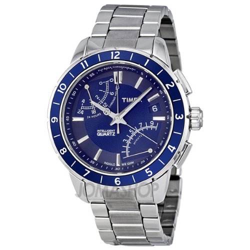 Timex's Intelligent Quartz Technology drives independent motors and digital sensors to give you the world's smartest analog watch. IQ fly-back chronograph INDIGLO night-light Second time zone Date feature Water-resistant to 330 feet (100 M) Timex Men's T2N501 Intelligent Quartz SL Series Fly-Back Chronograph Blue Dial Stainless Steel Bracelet Watch Do not Miss!! Timex's Intelligent Quartz Technology drives independent motors and digital sensors to give you the world's smartest analog watch. IQ fly-back chronograph INDIGLO night-light Second time zone Date feature Water-resistant to 330 feet (100 M) ... Timex Men's T2N501 Intelligent Quartz SL Series Fly-Back Chronograph Blue Dial Stainless Steel Bracelet Watch